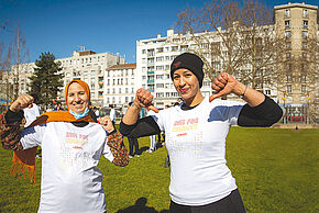 C’est quant à elles par le sport, et en s’imposant dans tous les espaces où elles restent minoritaires, voire invisibles, que les adhérentes de Sine Qua Non – structure soutenue par la ville depuis 2017 – luttent contre les violences sexistes et sexuelles. « Avec les Sine Qua Non Squads, nous allons en groupe faire du running et des exercices de fitness dans des lieux de la ville où l’on ne nous attend pas et que les femmes préfèrent en général éviter », détaille Mathilde Castres, présidente de l’association. Sine Qua Non s’invite par ailleurs régulièrement dans les city-stades pour des entraînements de deux heures. « C’est, à mon avis, une bonne façon de faire bouger les lignes et de nous faire respecter en tant que joueuses. »