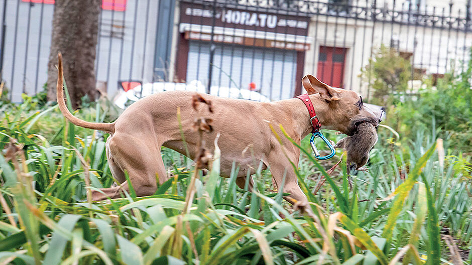 Soudain, un surmulot apparaît à la surface et détale à toute vitesse. Mais le lévrier est plus rapide : il lui saute dessus et le mord à la gorge. Fier de sa capture, le chien apporte sa proie à l’un des trois agents de l’entreprise PL nuisibles, têtes penseuses de ce stratagème bien rôdé qui, les 24 et 25 février, a permis de capturer 83 spécimens. Un résultat très positif pour la ville, laquelle ne cesse de lutter contre la prolifération des rats.