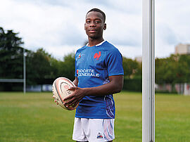 J’ai commencé le rugby au collège Jean-Jaurès vers l’âge de 10 ans. Ma grande sœur pratiquait ce sport et m’a donné envie d’essayer. Je viens d’intégrer le centre de formation du Stade Français tout en suivant un bachelor de décoration d’intérieur. Ce n’est pas toujours facile de concilier les deux ! Mais aujourd’hui, j’ambitionne de devenir professionnel. Mes meilleurs souvenirs de rugby remontent à mon adolescence. L’apprentissage du ROP est en effet très ludique. J’ai aussi beaucoup apprécié mes entraîneurs avec lesquels on a créé des liens fort