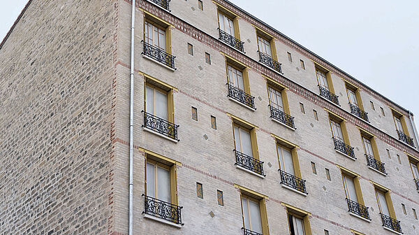 Cet immeuble de six étages construit au début du XXe siècle a été totalement réhabilité, des sols à la toiture, en passant par le réseau électrique et la plomberie. Une rénovation lourde qui conserve l’esprit du lieu. Ainsi, les briques de la façade, les faïences florales du hall et le bel escalier en bois ont été préservés.