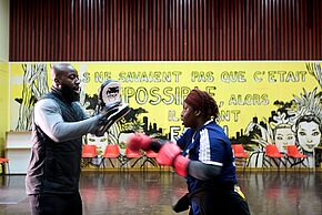 Inès et ses partenaires forment une équipe solidaire et bienveillante. Elles ont même créé un groupe WhatsApp pour échanger en dehors des cours. « On s’envoie des messages pour se motiver à venir aux séances des mardi et mercredi soir et du samedi matin, explique Kadiatou, 32 ans. Cheik nous donne aussi des conseils sur l’alimentation. » En l’espace d’un petit trimestre, Inès a réappris à manger. « Et mon moral s’améliore petit à petit, ajoute-t-elle. Je me sens plus légère, je suis dans une bonne dynamique, j’ai même repris les études ! » Même satisfaction du côté d’Ezra, 25 ans, qui ne rate pas un seul cours. « C’est devenu essentiel pour moi de faire du sport, alors que j’ai toujours détesté cela. » Au bout d’un mois et demi, la jeune femme assure qu’elle arrive à monter les escaliers sans être trop essoufflée. « Pour la première fois, j’obtiens des résultats : j’ai perdu 5 kilos et ma silhouette s’est affinée. »