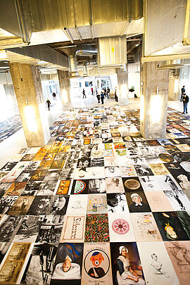 C’est que Fabrice Hyber a le goût de la démesure. Dans le parc de La Villette, c’est lui qui a imaginé ce parvis de 16 000 carreaux de céramique sur lequel sont représentés 10 000 dessins très caractéristiques de l’univers « hyberien ». Cette œuvre, située à côté des manèges et baptisée L’Artère, commémore les années de lutte contre le sida. « Ce lieu de mémoire est un antimonument, et je suis très amusé de voir que les gens se sont appropriés cet espace pour danser ou qu’il était devenu, il y a deux ou trois ans, un des plus grands spots pour les joueurs de Pokemon Go. »