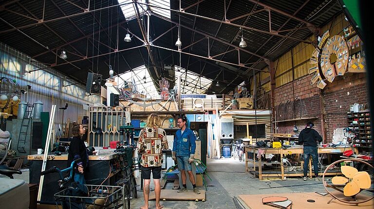 Le décor brut et décati est bien celui d’une friche industrielle restée dans son jus, qui rappelle que les Trente Glorieuses sont déjà loin. Le patron des lieux, Thibaut Sablé, nous explique : « Ce site appartenait à mon grand-père qui dirigeait une entreprise de fabrication de sièges pour les trains Corail et les tracteurs. Quand il a mis la clé sous la porte dans les années 1980, mon père a transformé ces locaux en ateliers d’artistes. Aujourd’hui, je m’occupe de ce lieu de création. Je tiens à préserver son esprit underground en ne proposant pas des ateliers trop aseptisés. Nous ne sommes pas dans un hôtel 4 étoiles. »