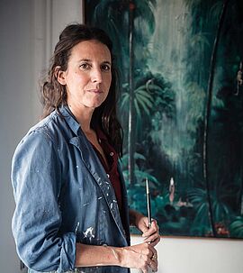 « Mon atelier d’une quinzaine de mètres carrés ressemble à une minuscule maison d’apothicaire. J’adore travailler avec des matériaux réutilisés ou naturels et confectionner mes couleurs à base de pigments organiques. Et tout cela, je le range soigneusement sur mes étagères, comme dans une bibliothèque », explique la peintre Mathilde Brunelet.
