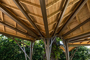 Issu de la première édition du budget participatif, le kiosque à musique du parc Stalingrad a été imaginé par l’entreprise pantinoise SOL Architecture. D’une surface de 77 m2, il vient se blottir au pied d’un imposant marronnier, situé derrière la serre, et forme une arène autour de l’arbre. Interprétation modernisée du kiosque parisien traditionnel du XIXe siècle, il est édifié sur un sol en bois, surmonté d’une structure métallique et coiffé d’un plafond en bois. Une rampe destinée aux personnes à mobilité réduite permet, en outre, de le rendre accessible à tous.