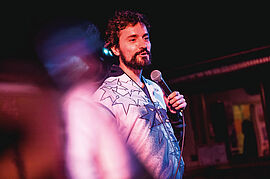 Le premier spectacle de stand-up donné à la brasserie Gallia remonte à 2018. « Au départ, nous jouions sous le hangar, se souvient Tristan Lucas, 42 ans, blaguiste et chroniqueur radio. Le bar a ensuite été en travaux pendant 2 ans, puis il y a eu le covid. La première saison complète remonte à 2022-2023. L’idée, c’était d’inviter quatre humoristes confirmés. Nous avons notamment accueilli Vérino, Haroun ou encore Mathieu Madénian. » La saison a repris en septembre et le show a lieu chaque troisième mercredi du mois. « Nous avons reçu deux Pantinois, Julien Santini, qu’on peut entendre sur France Inter, et Blandine Lehout qui a joué récemment au théâtre du Gymnase. »