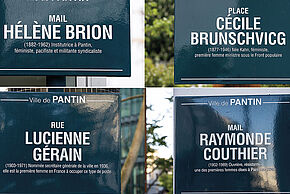 Si elle n’a pas encore atteint la parité, la ville a fait des progrès notables au cours de ces dernières années. On peut notamment citer le kiosque à musique Anne-Sylvestre (parc Stalingrad), le mail Dorita-Perez (dans le secteur des Pantinoises) ou bien encore le mail Hélène-Brion (quartier du Port).