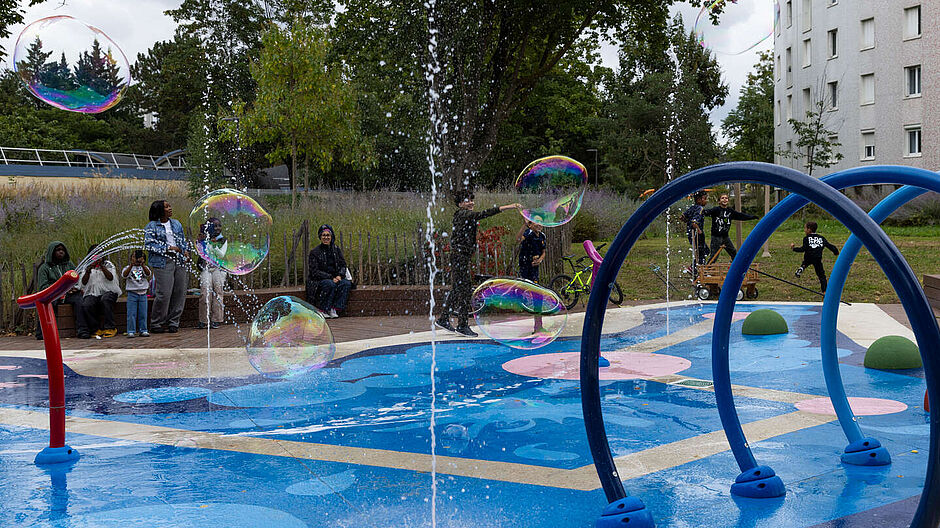 Le parc des Courtillières accueille un nouvel espace de jeux d’eau, créé grâce au budget participatif. Ce circuit fermé filtrant et désinfectant l’eau offre aux enfants un îlot de fraîcheur. Quatre boutons permettront d’activer divers jets et parcours aquatiques, rendant les enfants acteurs de leurs jeux. Hors périodes de chaleur, l’espace proposera des activités ludiques comme des marelles et des parcours.