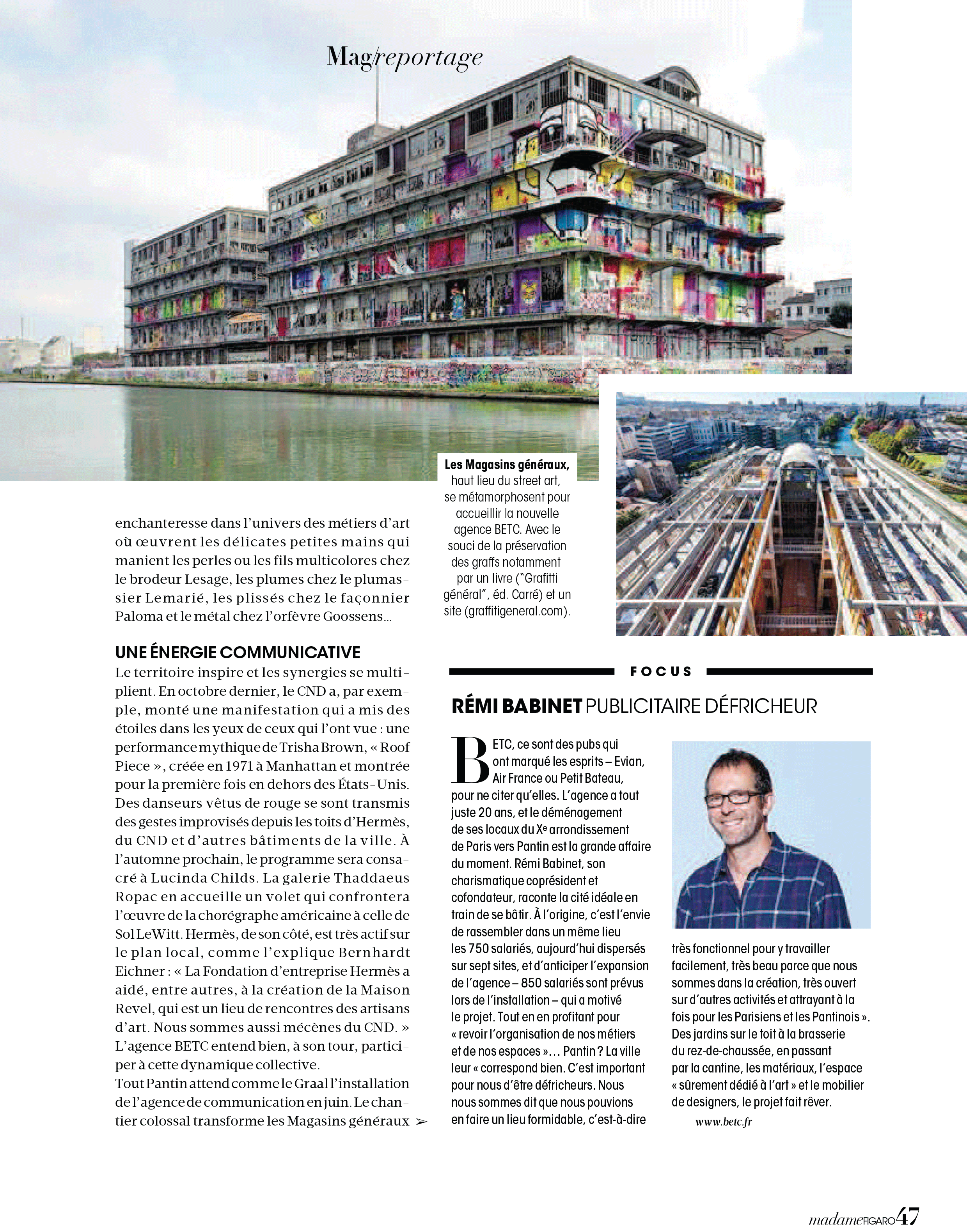 ► Article en ligne "Pantin, le nouvel eldorado des jeunes parisiens arty", 18 janvier 2016
